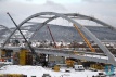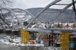 - Obecnie część łuku, część przęsła od strony Heleny jest w trakcie deskowania i w trakcie zbrojenia, część od strony zamku jest deskowana i na małej części zbrojona, są też montowane podwieszenia do łuków.