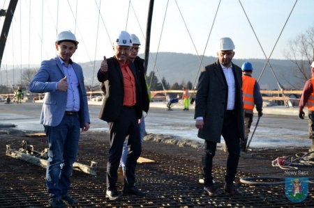Prezydent Miasta Nowego Sącza Ludomir Handzel, jego zastępca Artur Bochenek oraz dyrektor Miejskiego Zarządu Dróg Adam Konicki oglądali 19 lutego postęp prac przy budowie mostu heleńskiego. Aktualnie trwa tam betonowanie płyty pomostu od strony dzielnicy Helena.