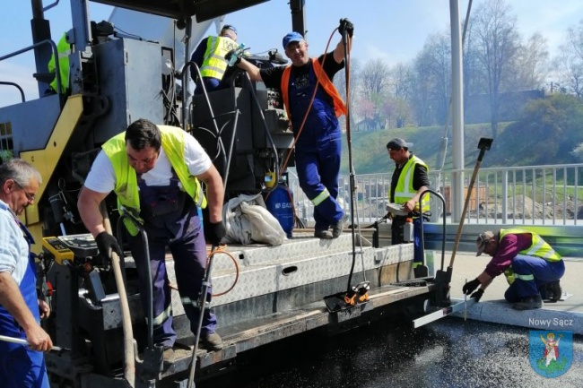 - Obecnie układana jest pierwsza ochronna warstwa asfaltowa, kładziona na warstwie papowej. Warstwa asfaltu lanego jest już ułożona na jednej stronie mostu. Prace prowadzone są na całej długości mostu. Prace trwają od samego rana - informuje dyrektor Miejskiego Zarządu Dróg w Nowym Sączu Adam Konicki.