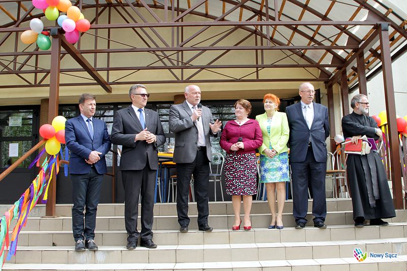 W uroczystości obok zastępcy prezydenta udział wzięli radni Rady Miasta Nowego Sącza Józef Gryźlak i Tadeusz Gajdosz oraz dyrektorzy wydziałów Urzędu Miasta: Inwestycji i Remontów Tomasz Łuczkiewicz i Edukacji Józef Klimek. W roli gospodyń wystąpiły dyrektor szkoły Jadwiga Kopeć i jej zastępczyni Bogumiła Pawlikowska. Boisko i siłownię poświęcił o. Bogdan Długosz SJ z parafii kolejowej.