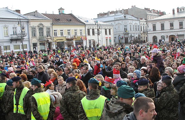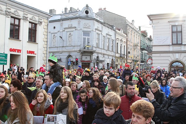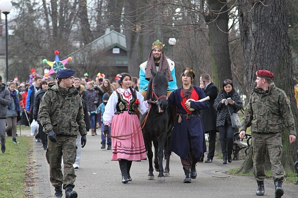 Orszaki, prowadzone przez królów jadących konno, wyruszyły z trzech stron miasta. W trakcie marszu uczestnicy śpiewali kolędy i pastorałki. Każdy otrzymał śpiewnik, a kto chciał, mógł założyć kolorową koronę. Sądeczanie oczekujący na pochód przed ratuszem, mogli zobaczyć jasełka w wykonaniu uczniów Zespołu Szkół Ekonomicznych w reż. s. Haliny Chojnackiej. Kiedy wszystkie orszaki dotarły do Rynku, spotkały się pod balkonem Galerii Marii Ritter, gdzie odegrana została scena z Herodem na balkonie, na podstawie fragmentu Ewangelii wg Św. Mateusza. Następnie jeden wspólny orszak, przeszedł na Rynek, gdzie przy ratuszu czekała Święta Rodzina, której królowie złożyli pokłon oraz dary. Wszyscy pokłonili się maleńkiemu Jezuskowi, w którego wcielił się 8-miesięczny Filip Marczyk. W szopce pod ratuszem, ku uciesze dzieci, były żywe zwierzęta pochodzące z gospodarstwa agroturystycznego Jana Cieślika w Żeleźnikowej Wielkiej.