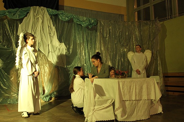 Następnie goście oraz mieszkańcy obejrzeli spektakl przygotowany przez uczniów i nauczycieli z ZSPG nr 1. Kolejną niespodzianką dla zebranych był występ szkolnej grupy kolędniczej.