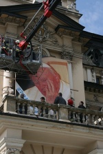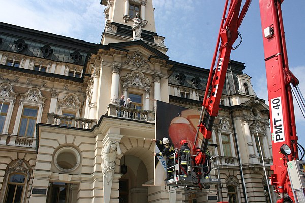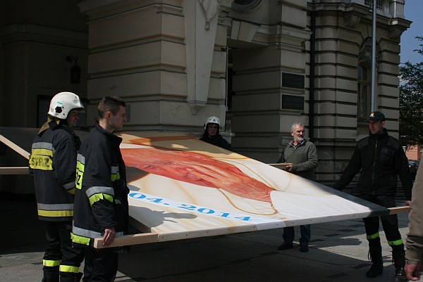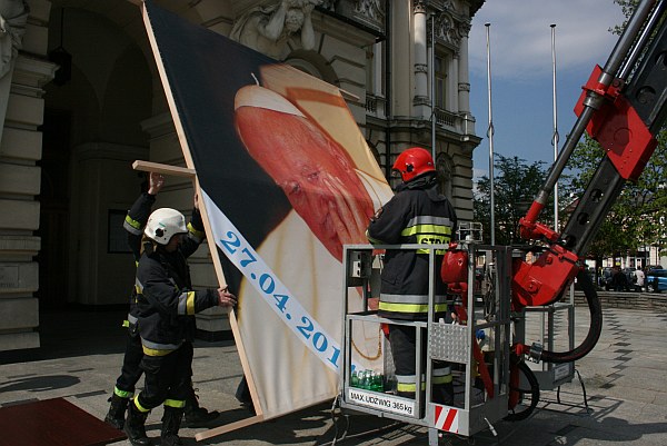 A już dzisiaj sądeccy strażacy, na balkonie ratusza, montowali portret Ojca Świętego. Będzie on przypominał o zbliżającej się kanonizacji.