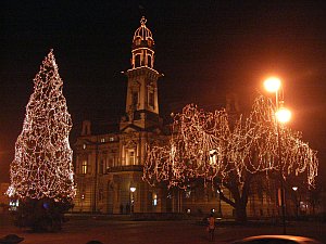 Drzewko ubrano w kolorowe bańki i kurtynę świetlną z 15 tys. punktów świetlnych.