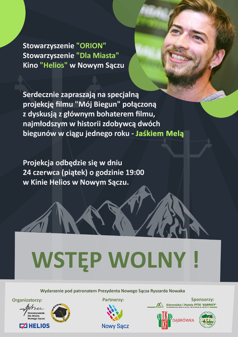 W piątek o godzinie 19:00 pod patronatem Prezydenta Miasta Nowego Sącza Ryszrda Nowaka w Kinie Helios w Nowym Sączu odbędzie się projekcja filmu "Mój Biegun" połączona z dyskusją z jej głównym bohaterem - Jaśkiem Melą.