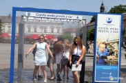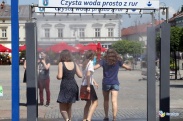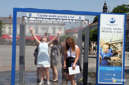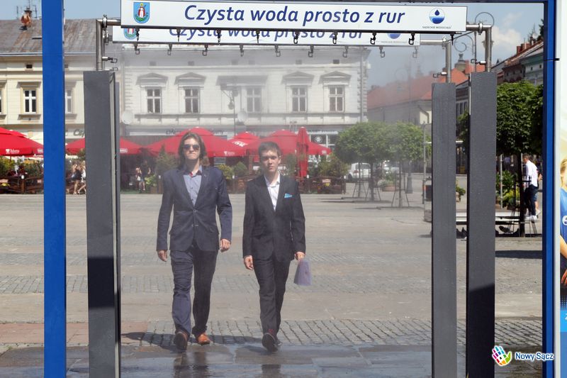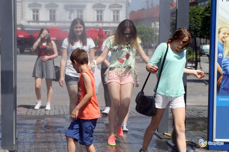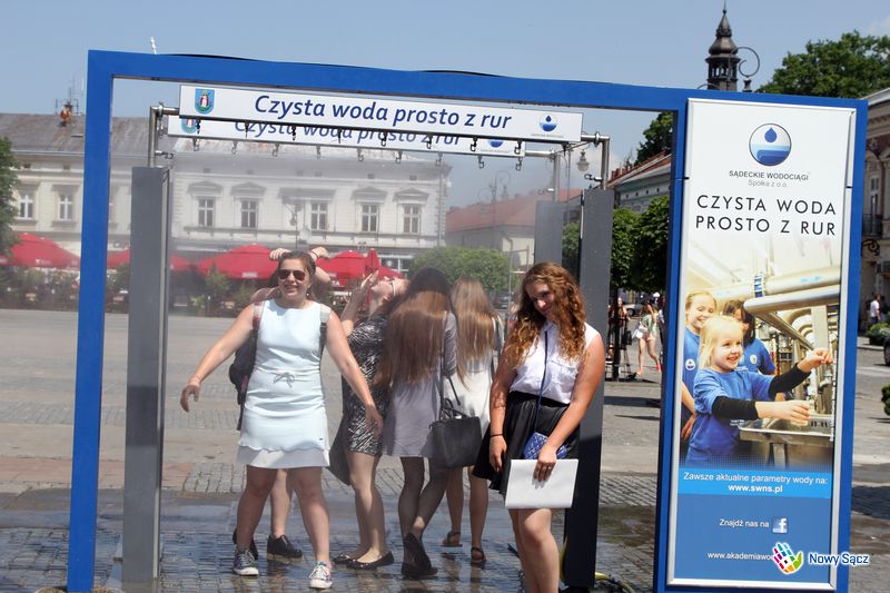 Miasto Nowy Sącz zadbało o jeszcze jeden sposób na ochłodę. To kurtyna wodna na rynku. Urządzenie rozpylające delikatną wodną mgiełkę cieszy się nieustannym zainteresowaniem spragnionych chłodu sądeczan. Zostało zainstalowane przez Sadeckie Wodociągi. Jeśli będziemy na pozbawionym drzew rynku, nie wahajmy się i skorzystajmy z kurtyny wodnej dla ochłody. Jest tak gorąco, że wyschniemy niemal natychmiast, a przyjemne odczucie chłodu pozostanie co najmniej na kilkanaście minut.