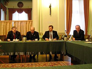 Prezydent Józef Antoni Wiktor i starosta nowosądecki Jan Golonka byli gospodarzami w sądeckim Ratuszu, 30 grudnia 2004 roku, świąteczno – noworocznego spotkania z nowosądeckimi parlamentarzystami i radnymi Sejmiku Samorządowego Województwa Małopolskiego.