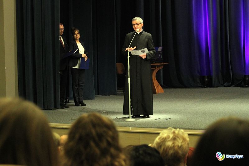 W uroczystym spotkaniu wzięli także udział: ks. Paweł Stabach, asystent kościelny Społecznej Rady Rodziny Szkół im. Jana Pawła II Diecezji Tarnowskiej, Artur Puciłowski, dyrektor Delegatury Małopolskiego Kuratorium Oświaty w Tarnowie oraz radny Rady Miasta Nowego Sącza Józef Gryźlak.