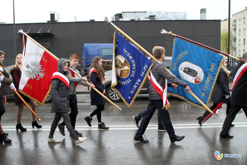 W przemarszu ulicami miasta wyruszyli obecni na nabożeństwie zastępca prezydenta Jerzy Gwiżdż, przedstawiciele Wydziału Edukacji dyrektor Józef Klimek i Halina Wiśniowska, przewodnicząca Rady Miasta Bożena Jawor, radni Elżbieta Chowaniec i Janusz Kwiatkowski, przedstawiciel Powiatu Nowosądeckiego Marian Ryba, nauczyciele i uczniowie Zespołu Szkół nr 2 oraz liczne grono sądeczan.