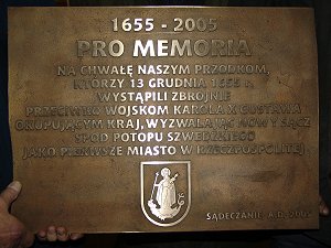 Do południa w II LO im. Marii Konopnickiej odbędzie się sesja popularno-naukowa, a o godz. 15.30 z inicjatywy PTTK i Urzędu Miasta u zbiegu ulic Jagiellońskiej i Szwedzkiej, „pod Jagiełłą”, odsłonięta zostanie pamiątkowa tablica. W tym miejscu pierwotnie znajdował się cmentarz, na którym pochowano poległych sądeczan podczas walk ze Szwedami w grudniu 1655 r.