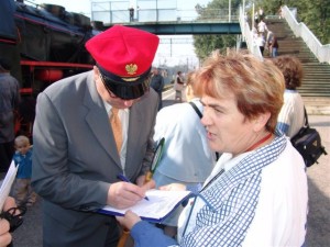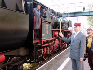 Znak do odjazdu „zielonym lizakiem” dał przysposobiony do roli dyżurnego ruchu starosta nowosądecki Jan Golonka, wspomagany przez rektora WSB-NLU Krzysztofa Pawłowskiego. Stację przeszył nagły świst, para - buch, koła poszły w ruch....