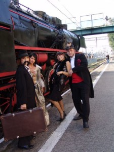 Towarzystwo z minionej epoki wciągnęło podróżujących do wspólnej zabawy przy muzyce i pląsach. Przywołano szlagiery wodewili krakowskich, operetkowe arie, kuplety i tańce (kankan, krakowiak). Rapowano też młodopolskie teksty, śpiewano arię "Libiami Libiami" i odgadywano galicyjskie zagadki. Pojawił się także "Chochoł z Wesela", który aktywnym uczestnikom rozdawał "złote rogi szczęścia".