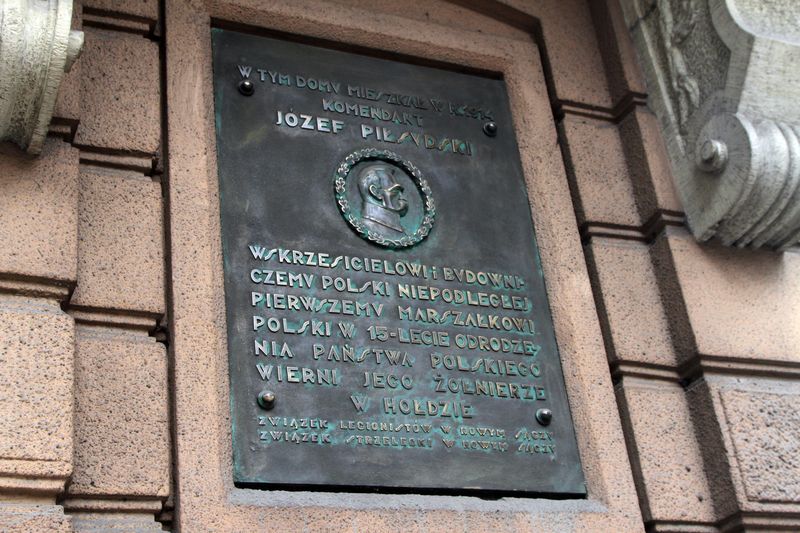 Nowy Sącz jako pierwsze miasto na ziemiach polskich nadało Józefowi Piłsudskiemu tytuł honorowego obywatela miasta. Marszałek bywał w Nowym Sączu wielokrotnie, ale historia najbardziej zapamiętała jego wjazd na czele ułanów po bitwie pod Marcinkowicami. Piłsudski z rozrzewnieniem wspominał entuzjastyczne przyjęcie i gościnę u sądeczan. Na zdjęciu: tablica na budynku przy ul. Dunajewskiego, gdzie mieszkał Marszałek podczas pobytu w Nowym Sączu.