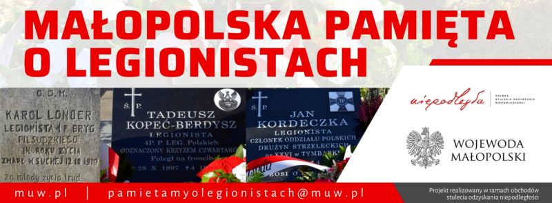 "Małopolska pamięta o Legionistach" – projekt pod takim hasłem realizuje Urząd Wojewódzki w Krakowie. Jego celem jest zebranie informacji o mogiłach Legionistów, które znajdują się poza cmentarzami wojennymi na terenie województwa. Małopolanie proszeni są o wskazywanie takich miejsc.