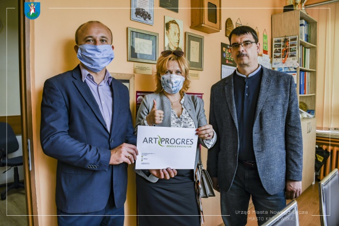 Zastępca prezydenta Magdalena Majka wraz z radnym Grzegorzem Ledzińskim przekazali do nowosądeckich szkół 300 przyłbic ochronnych, które miasto otrzymało od firmy Art-Progres.