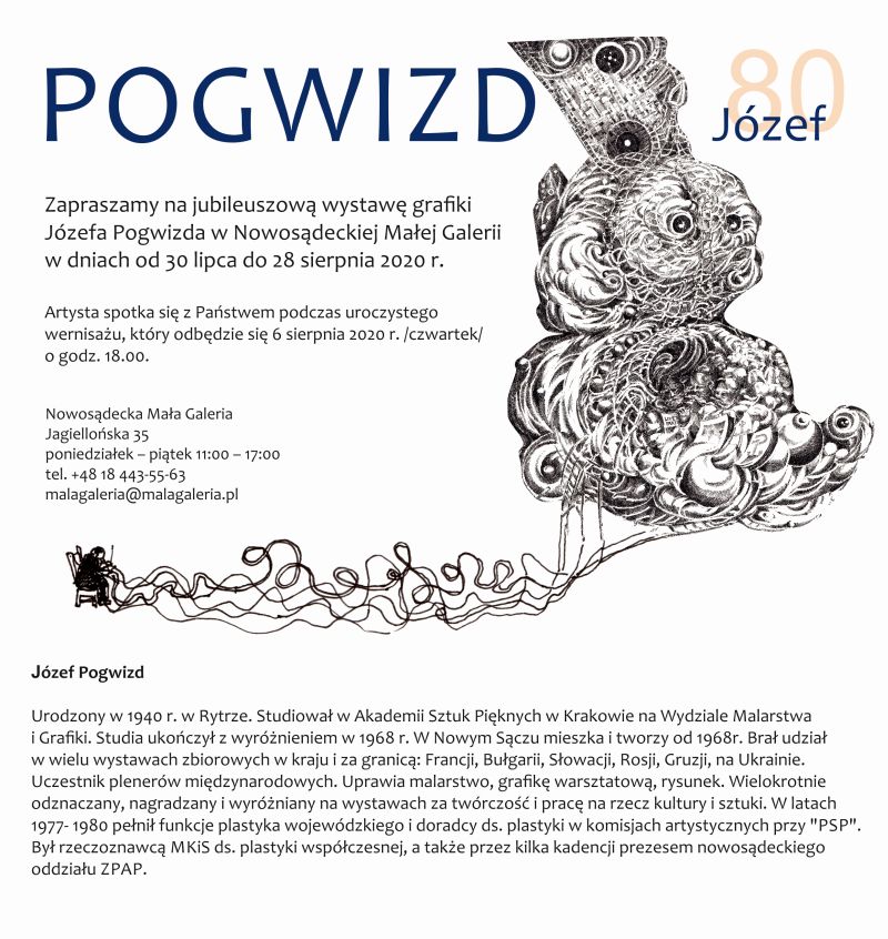 Zapraszamy na Jubileuszową wystawę grafiki Józefa Pogwizda w Nowosądeckiej MałejGalerii w dniach od 30 lipca do 28 sierpnia 2020 r.