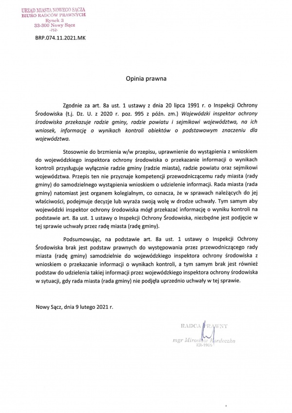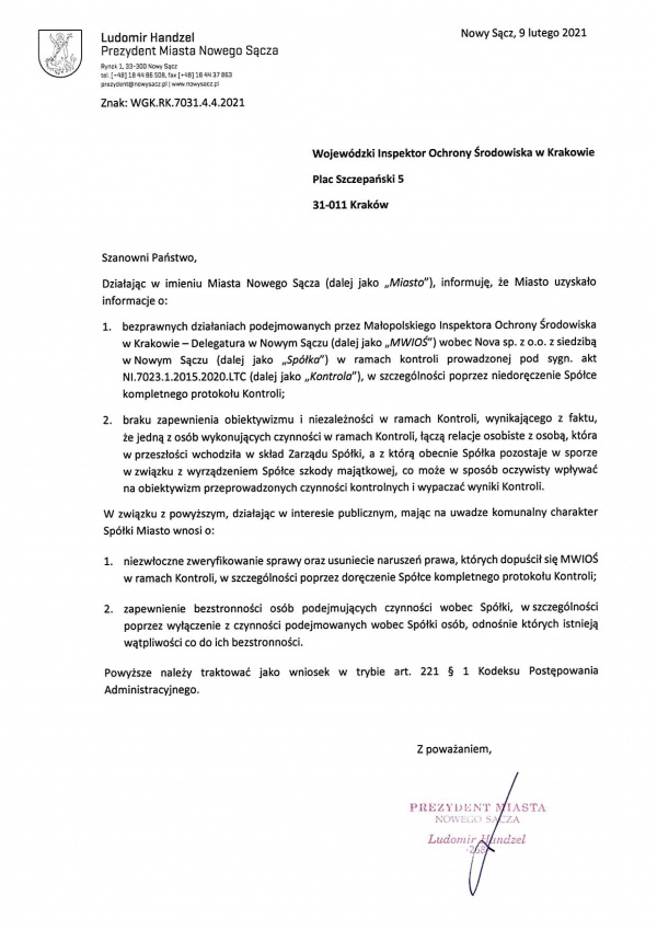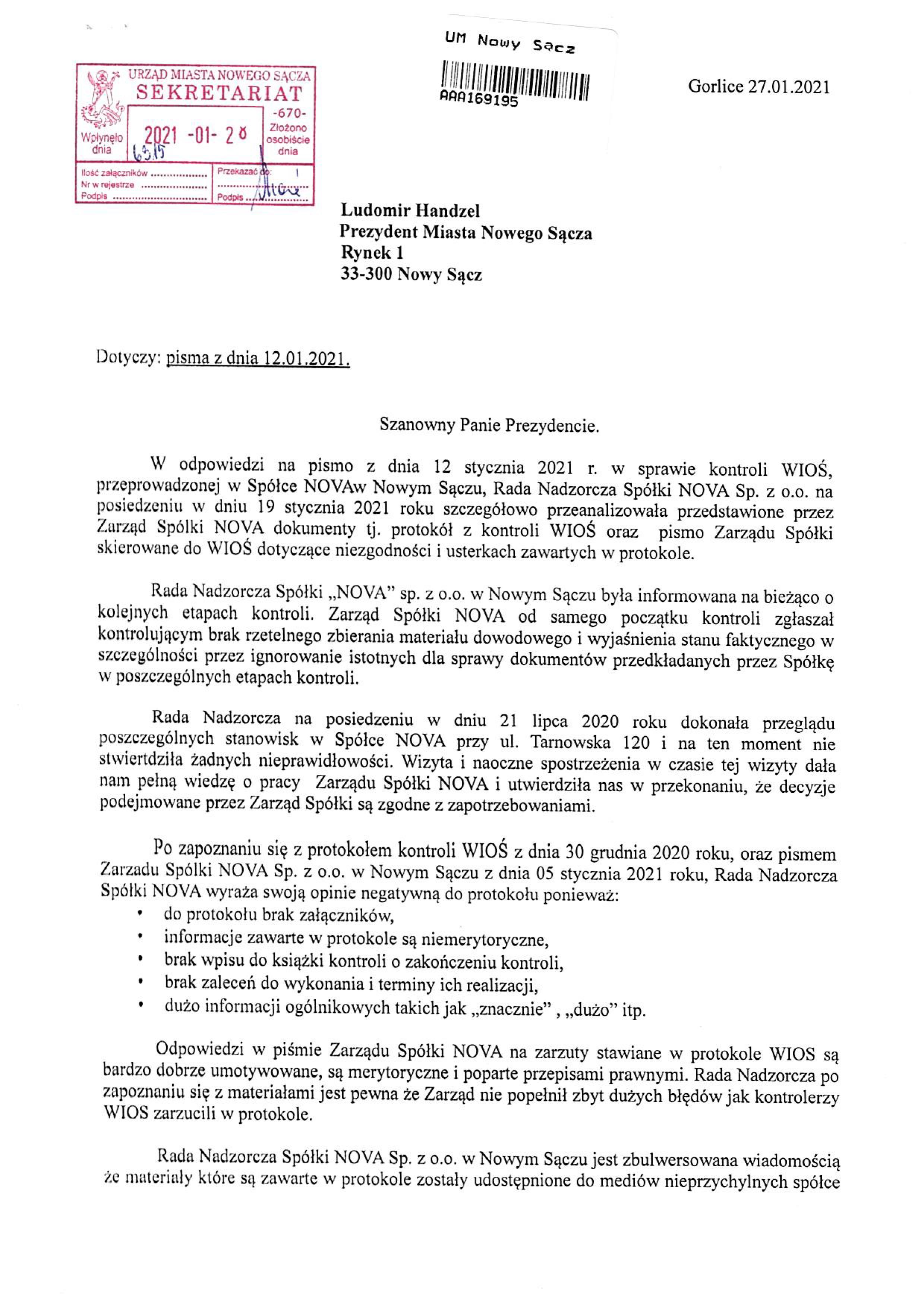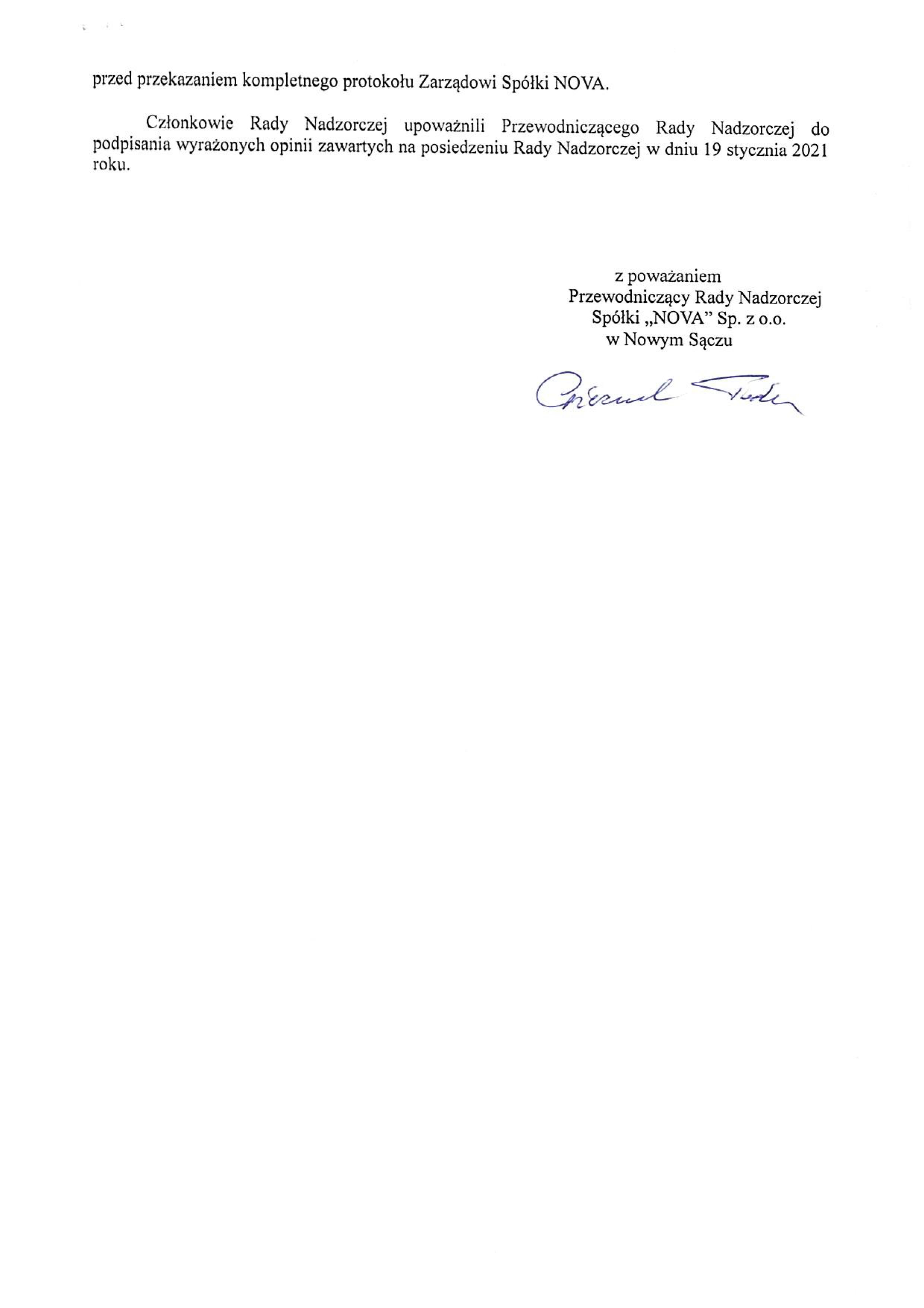 Rada Nadzorcza Spółki NOVA wyraziła negatywną opinię do protokołu kontroli WIOŚ ponieważ: