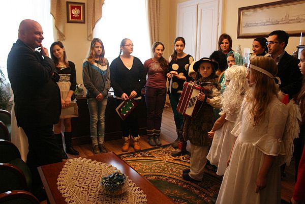 Już po raz piąty przedstawiciele z piętnastu świetlic środowiskowych odwiedzili prezydenta Ryszarda Nowaka, aby złożyć życzenia świąteczne i noworoczne. Wspólnie z prezydentem w spotkaniu uczestniczyli także wiceprezydent Bożena Jawor i Marta Mordarska Pełnomocnik Prezydenta ds. Społecznych. Dzieci zaprezentowały krótkie jasełka, złożyły życzenia i śpiewały kolędy.