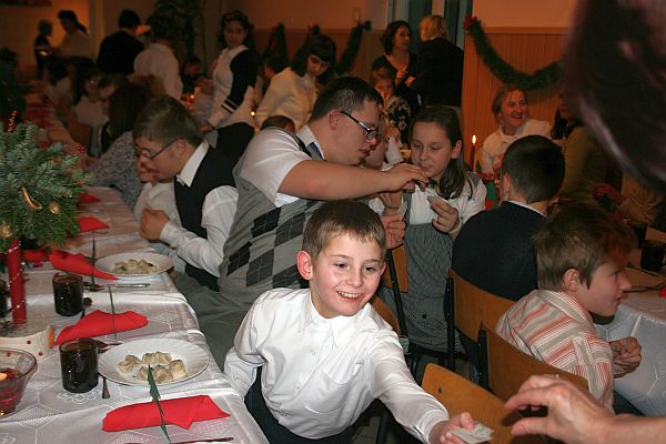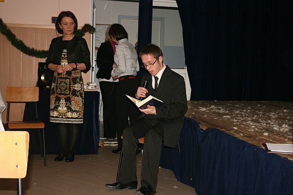 Przy wigilijnym stole spotkali się wychowankowie i nauczyciele Specjalnego Ośrodka Szkolno-Wychowawczego. Tradycyjnie podczas wigilii wystawiane jest przedstawienie bożonarodzeniowe. Sceny z narodzenia Jezusa przeplatane piosenkami, z wymowną symboliką, ze współczesnymi akcentami odegrane przez dzieci wzruszyły wszystkich obecnych. Wiceprezydent Bożena Jawor dziękowała nauczycielom za poświęcany czas, trud i wychowanie najmłodszych. Życzyła radości i odpoczynku z najbliższymi, zdrowia i dobroci. Życzenia przekazała również dyrektor SOSW Urszula Gawrońska, oraz goście ksiądz prałat Jan Piotrowski z Bazyliki św. Małgorzaty oraz radni Barbara Jurowicz, Elżbieta Chowaniec, Mieczysław Gwiżdż i Artur Czernecki. We wspólnej wigilii uczestniczyli również Dyrektor Wydziału Edukacji Józef Klimek oraz przyjaciele starostwa powiatowego.