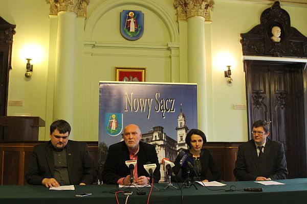 Podczas dzisiejszej konferencji prasowej dotyczącej cyklu wydarzeń, które odbywają się na terenie Nowego Sącza pod hasłem "Włącz myślenie. Postaw na przedsiębiorczość", wiceprezydent Jerzy Gwiżdż, dyrektor Wydziału Przedsiębiorczości Urzędu Miasta Nowego Sącza Magdalena Januszek-Gródek, Dziekan Wydziału Nauk Społecznych i Informatyki w WSB-NLU dr Dariusz Woźniak oraz radny Patryk Wicher, przedstawiciel Stowarzyszenia na Rzecz Integracji Środowisk Akademickich "ORION" w Nowym Sączu, przedstawili informacje dotyczące planowanych wydarzeń, a w szczególności konkursu, w ramach którego uczniowie będą przygotowywać kampanię promocyjną swojej szkoły.