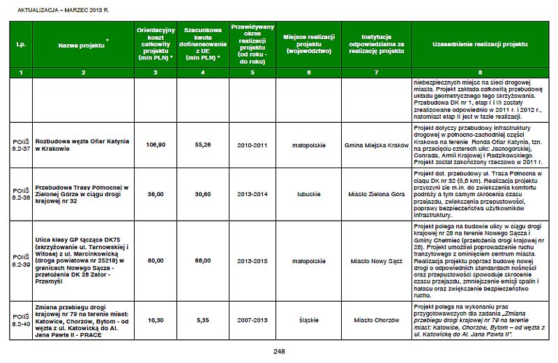 Lista projektów indywidualnych dla Programu Operacyjnego Infrastruktura i Środowisko 2007-2013 (pdf)