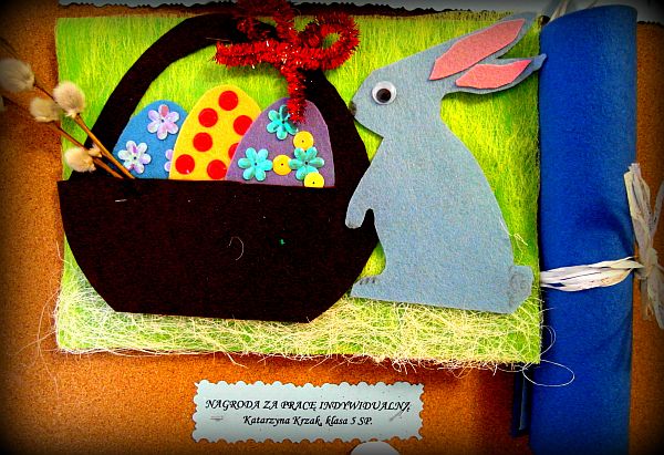 Z okazji Świąt Wielkanocy Zespół Świetlic Środowiskowych zorganizował dla wychowanków konkurs plastyczny ph. „Moja kartka wielkanocna”. Celem konkursu było kultywowanie tradycji świąt, rozwijanie kreatywności, wrażliwości i wyobraźni plastycznej uczestników konkursu oraz promocja twórczo działających świetlic. Wychowawcy zgłosili ok. 150 prac indywidualnych oraz 13 prac zbiorowych wykonanych w dowolnej technice. Rozstrzygnięcie konkursu odbyło się w minionym tygodniu.