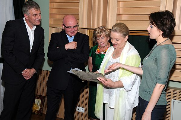 W rolach głównych, w opowieści o nadopiekuńczej miłości, napisanej z delikatnością, ciepłem i subtelną ironią, wystąpił oryginalny duet: syn i matka – Grzegorz Małecki i Anna Seniuk, wielka gwiazda polskiego teatru i filmu, która zauroczona od wielu lat miastem nad Dunajcem i Kamienicą wybrała akurat Nowy Sącz na pokazanie po raz pierwszy przedstawienia, uświetniającego początki obchodów jej jubileuszu 45-lecia pracy artystycznej. Jubilatkę nagrodzili brawami m.in. prezydent Ryszard Nowak i wiceprezydent Bożena Jawor oraz dyrektor Wydziału Kultury i Sportu Urzędu Miasta Józef Kantor.