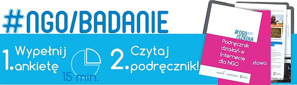 Badanie kierowane jest do NGO z całej Polski. Organizacje, które wezmą w nim udział uzyskają dostęp do „Podręcznika działań w Internecie dla NGO”, poświęconego promocji działań organizacji przy użyciu nowych technologii (pozycjonowanie stron internetowych, social media, e-mail marketing). Wypełnienie ankiety nie powinno zająć więcej niż 15 minut.