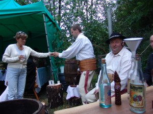Mieszkańcy gminy Łącko oraz turyści mogli podziwiać wczoraj dorodne owoce z łąckich sadów. Jednak największe zainteresowanie budziło dwóch górali, którzy prezentowali produkcję jednego z najbardziej znanych polskich trunków.