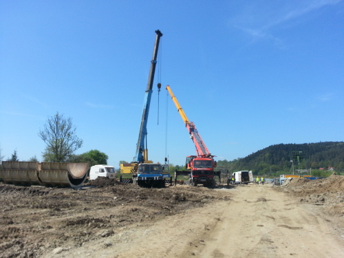 Wykonawca inwestycji przystąpił do przygotowania platform pod palownice na obiekcie MD-8 (most im. dr Jerzego Masiora na rzece Łubinka) oraz rozpoczęto działania dotyczące przygotowania platform pod żurawie.