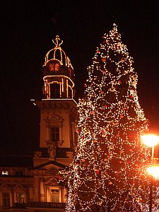 Drzewko ubrano w kolorowe bańki i kurtynę świetlną z 15 tys. punktów świetlnych.