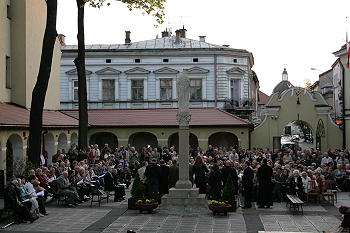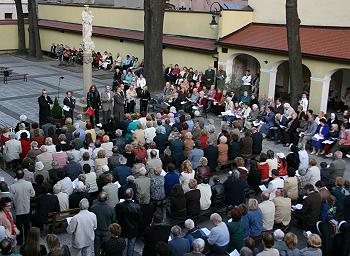W trakcie koncertu wykonywano pieśni patriotyczne i maryjne. Ponieważ miesiąc maj wiąże się nierozerwalnie z majówkami, miejsce centralne podczas patriotycznego śpiewania zajmowała figura Marii z Dzieciątkiem, która góruje nad dziedzińcem klasztoru Ojców Jezuitów.
