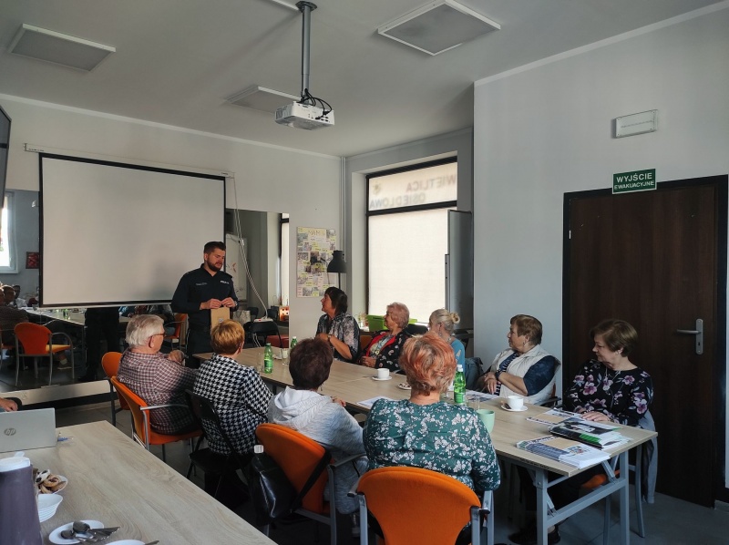 Kolejną kwestią poruszoną podczas tego spotkania były również oszustwa, m.in. te na tzw. „marynarza czy amerykańskiego żołnierza". Pan Jacek Salamon z Fundacji IWO-Doradztwo Obywatelskie opowiedział o właśnie takich sposobach wyłudzeń, polegających na rozkochaniu w sobie przez oszusta osoby starszej i samotnej. Nieświadoma ofiara poznaje swoją „miłość” na portalach społecznościowych czy profilach randkowych. Sprawca otacza ofiarę czułością i romantyzmem, a jak się później okazuje, wymyśla różne kłamstwa, aby pozyskać pieniądze od zakochanej osoby, a później znika. Pan Jacek Salamon przedstawił uczestnikom spotkania różne formy pomocy, z jakich mogą korzystać, w przypadku gdy staną się ofiarami przestępstwa. Jedną z możliwości jest skorzystanie z nieodpłatnej pomocy prawnej i pychologicznej, jaką od lat świadczy Fundacja IWO-Doradztwo Obywatelskie. Więcej informacji na temat działania Fundacji znajdziecie Państwo na stronie www.fundacjaiwo.org