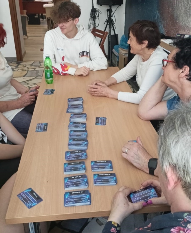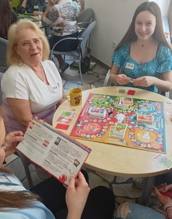 Następnie uczestnicy spotkania zagrali w przeróżne gry planszowe – od klasycznej gry Scrabble czy Szachy, po bardziej nowoczesne takie, jak „Było sobie życie” czy „5 sekund”. Nie zabrakło także znanej i lubianej gry, do której potrzebna jest jedynie kartka i długopis, czyli „Państwa Miasta”. Graczy mocno wciągnęła rozgrywka w „Milionerów”, a „Tabu” dostarczyło sporo śmiechu.