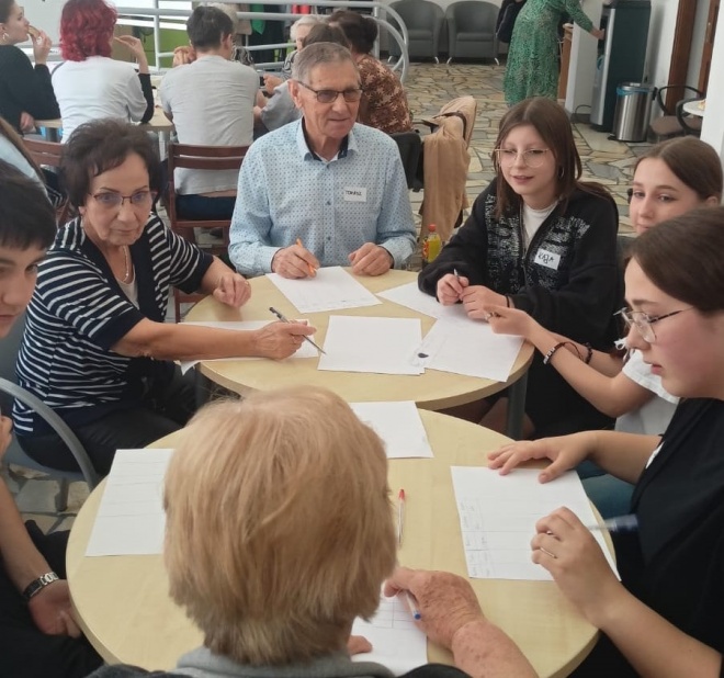 Na wstępnie spotkania Seniorzy oraz Młodzież wymienili się swoimi doświadczeniami związanymi z grami ze swojego dzieciństwa oraz z takimi, w które grają teraz. Okazuje się, że i jedni i drudzy nie trwonią od gier elektronicznych, ale pojawiły się również głosy, że integracja dziadków ze swoimi wnukami poprzez rozmaite gry planszowe i karciane nie zaniknęła całkiem w czasach dzisiejszego postępu technologicznego.