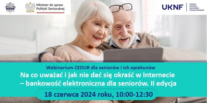 Webinarium jest organizowane przez Urząd Komisji Nadzoru Finansowego w ramach projektu Centrum Edukacji dla Uczestników Rynku – CEDUR, we współpracy z Minister do spraw Polityki Senioralnej oraz Komendą Główną Policji.