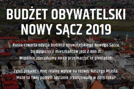 Wzorem lat ubiegłych Prezydent Miasta Nowego Sącza zarządzeniem nr 75/2018 z dnia 12 lutego 2018 r. ogłosił Regulamin Budżetu Obywatelskiego Miasta Nowego Sącza na rok 2019, w ten sposób zaprosił mieszkańców miasta do udziału w tworzeniu budżetu na 2019 r. w ramach tzw. Budżetu Obywatelskiego.