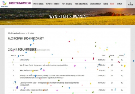 Wyniki głosowania można śledzić na stronie: https://bo.nowysacz.pl/wyniki