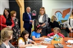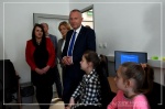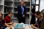 Po przecięciu wstęgi rozległ się wystrzał i na gości spadł deszcze konfetti. Następnym punktem programu było zwiedzanie każdego z odnowionych pomieszczeń, od parteru po II piętro. Goście zajrzeli między innymi do studia muzycznego, pracowni wyrobów z gliny, gdzie zamontowano nowoczesny piec do jej wypalania i sal ćwiczeń muzycznych oraz pracowni językowej. Zwiedzający nie ominęli także nowoczesnej pracowni komputerowej i scenograficznej.