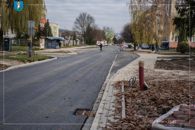 Trwa remont ul. Broniewskiego. Zakończyły się już prace przy układaniu warstwy ścieralnej na całej długości ulicy.