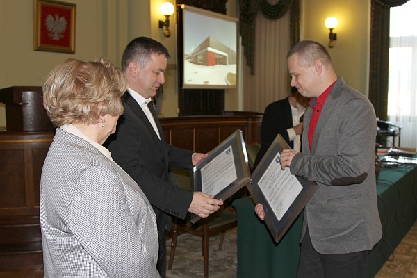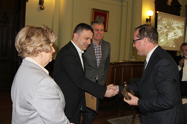 Pamiątkowe statuetki oraz dyplomy wręczali inwestorom oraz projektantom: wiceprezydent Bożena Jawor, dyrektor Mirosław Trzupek, Stanisław Deńko oraz Józef Kantor, dyrektor Wydziału Kultury i Sportu Urzędu Miasta.