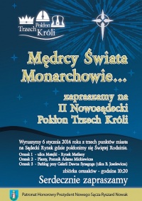 Już za tydzień, w poniedziałek 6 stycznia 2014 roku odbędzie się II Nowosądecki Pokłon Trzech Króli, na który już dziś serdecznie zapraszamy wszystkich mieszkańców.
