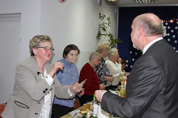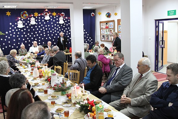 Uczestniczył w nim również wiceprezydent Jerzy Gwiżdż, który życzył seniorom zdrowia, szczęścia, spokoju i wszelkiego dobra w nowym roku. Obecny na spotkaniu ks. Zbigniew Biernat, proboszcz parafii pw. bł. Jana Pawła II pobłogosławił opłatki i złożył mieszkańcom życzenia. „Aby ten nowy rok 2014 był lepszy od tego , który zakończył się kilka dni temu. Życzę, abyście doświadczali na co dzień radości, która płynie przede wszystkim od Jezusa Chrystusa, który przyniósł miłość na Ziemię. Bo jeżeli będziemy blisko Pana Boga, będziemy doświadczać dobroci i życzliwości od drugiego człowieka” – mówił proboszcz.