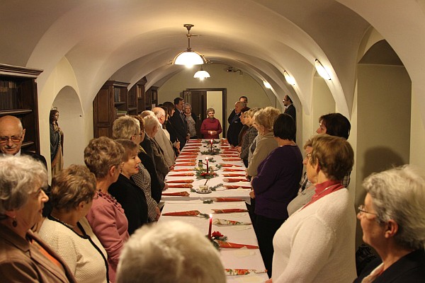Następnie goście przeszli na poczęstunek, podczas którego serwowano potrawy kuchni kresowej. Proboszcz parafii o. Józef Polak SJ, modląc się za zebranych, poświęcił opłatki i złożył najlepsze życzenia na nowy rok. „Opłatek to taka polska tradycja, która pozwala zapomnieć na chwilę o sobie, popatrzeć drugiej osobie w oczy i pomyśleć czego ja Tobie i sobie chcę życzyć. Na chwilę nie ma nas, tylko jest druga osoba. To piękna tradycja, która wprowadza nas w istotę chrześcijaństwa, bo w drugim człowieku szukamy tego dobra, którego mu życzymy czyli tak naprawdę bliskości Boga” – mówił proboszcz.