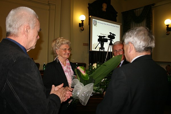 Oprócz kwiatów i gratulacji Przewodniczący Rady Miasta Jerzy Wituszyński przypomniał działalność Stowarzyszenia „Przyjaciele Serca i Życia” i zaangażowanie Anny Oleksy, która swoją działalność na rzecz innych osób prowadzi przeszło 20 lat. „ Dzięki jej zapałowi i determinacji cele oraz misja Stowarzyszenia „Przyjaciele Serca i Życia” są w pełni realizowane. Pani Anna od kilku lat współpracuje z Urzędem Miasta Nowego Sącza w realizacji przedsięwzięć z zakresu pomocy społecznej, ochrony zdrowia oraz turystyki i rekreacji osób starszych. Jako inicjatorka wielu projektów o zasięgu lokalnym m.in. „Serce w dobrej formie”, „Żyj aktywnie”, „Światowy Dzień Serca”, mających na celu aktywizację osób starszych oraz promowanie zdrowego stylu życia, przyczynia się czynnego udziału w życiu Miasta osób pozostających na emeryturze oraz podnoszenia ich świadomości o zagrożeniach zdrowotnych”- podkreślił przewodniczący.