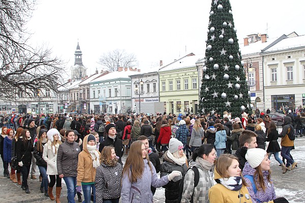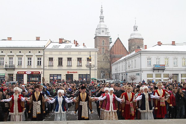 1600 tegorocznych maturzystów zatańczyło w południe poloneza na sądeckim Rynku. Po raz siódmy chodzonego prowadzili tancerze z zespołu „Sądeczanie”, a tuż za nimi wiceprezydenci Bożena Jawor i Jerzy Gwiżdż, sekretarz miasta Marek Oleniacz oraz uczniowie. Ponad 800 par odtańczyło poloneza tradycyjnie do muzyki Wojciecha Kilara z filmu „Pan Tadeusz”. Choreografię przygotował tym razem Dariusz Migacz z Centrum Tańca ADeeM.