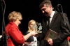 Pamiątkowe statuetki "Ziarnka Gorczycy" wręczali: wiceprezydent Bożena Jawor oraz radny wojewódzki Leszek Zegzda, prezes Towarzystwa Przyjaciół Chorych Sądeckie Hospicjum.