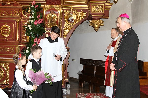 „Życzę całej wspólnocie parafialnej, w której mogłem się ubogacać łaską wiary, życzliwości, miłości, która niesie pokój, pomocy misjom, aby Boże krótkie słowa były waszymi codziennymi drogowskazami. Aby prowadziły was do tego, co istotne w życiu, co kształtuje naszą piękną relację z Bogiem i bliźnimi. Odczytujcie również na drodze waszego chrześcijańskiego powołania, tę obietnicę nieba, którego przedsmak Bóg nam ofiaruje w rodzinach, stowarzyszeniach, w organizacjach społecznych i w tej wielkiej wspólnocie, jaką jest królewskie miasto Nowy Sącz” – mówił w homilii biskup Jan Piotrowski. Wyraźnie wzruszony, żegnając się z parafianami, na zakończenie nabożeństwa dodał: „Kiedy w końcu zaczęliśmy się kochać, trzeba się rozstać. Takie jest niestety prawo miłości. Z całego serca pragnę wszystkim podziękować. Nowy Sącz to miejsce, do którego wracam się z dużym sentymentem. Z sercem, które tęskni za pięknem serc sądeckich. Doświadczenie, które wyniosłem z tej parafii jest ważną kartą w moim życiorysie. Nowy Sącz zawsze był dla mnie szczególnym miastem. Nie spędziłem w nim wielu lat, ale przecież tu rozpocząłem swoją praktykę duszpasterską jako kleryk, diakon”.