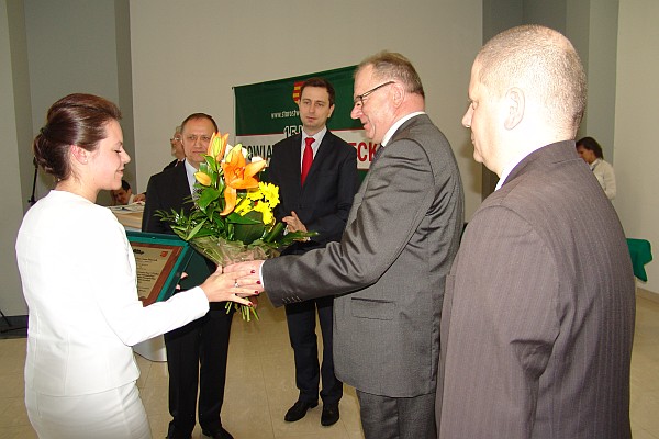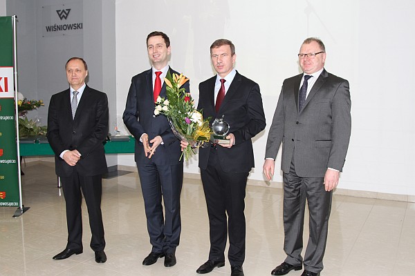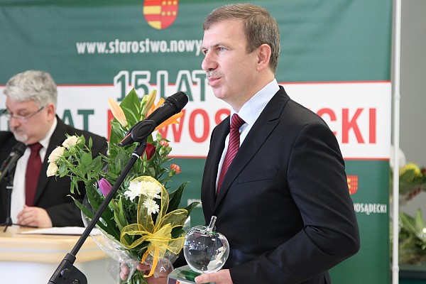 Prezydent Ryszard Nowak uczestniczył w Gali Przedsiębiorczości „Sądecki Lider Biznesu”, podczas której Andrzej Wiśniowski, założyciel i właściciel firmy Wiśniowski, otrzymał od starosty nowosądeckiego Jana Golonki Kryształowe Jabłko Sądeckie. Pod nieobecność szefa firmy, Jabłko odebrał Wiesław Pióro - dyrektor eksportu w firmie Wiśniowski. Podczas Gali, która odbyła się wczoraj w firmie Wiśniowski, obecny był minister pracy i polityki społecznej Władysław Kosiniak-Kamysz. „Gratuluję wszystkim, którzy mieli odwagę założyć własną firmę i stwarzać nowe miejsca pracy – mówił minister. Cieszę się, że na Sądecczyźnie jest tylu młodych, prężnych ludzi, którzy nie zważając na przeciwności, biorą sprawy w swoje ręce i pokazują, że można pracować i rozwijać się.”