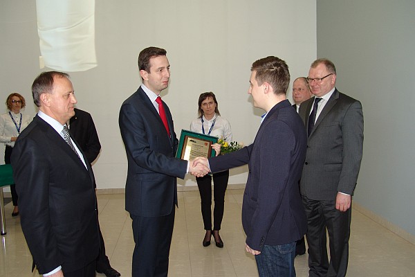Minister Władysław Kosiniak-Kamysz wraz ze starostą Janem Golonką i przewodniczącym RPN Wiesławem Bastą wręczyli nagrody w IV edycji konkursu „Start w biznes z Urzędem Pracy”.